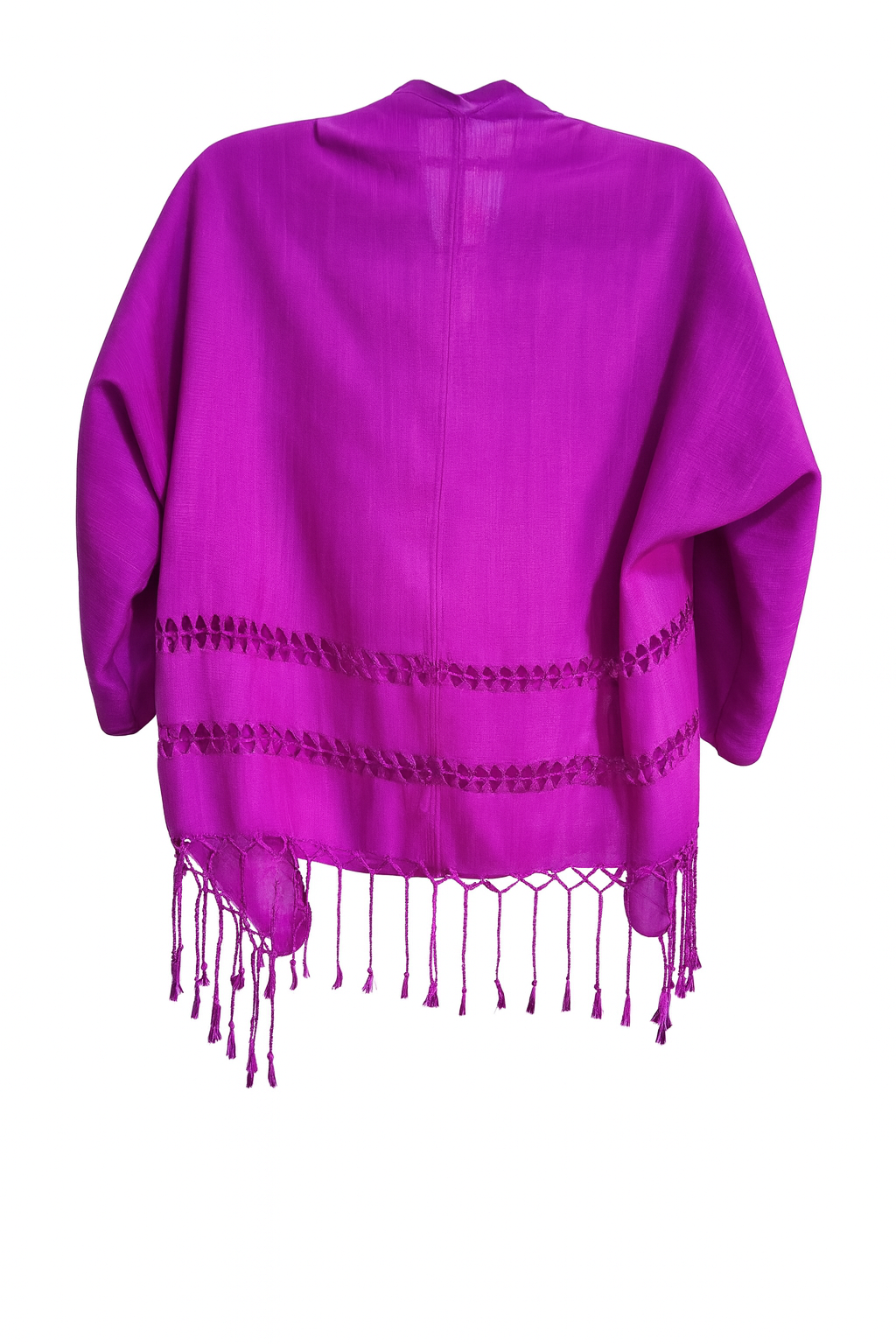 Blusa hecha con chalina de artisela, con escote columpio. Mangas 3/4 y puntas en la espalda